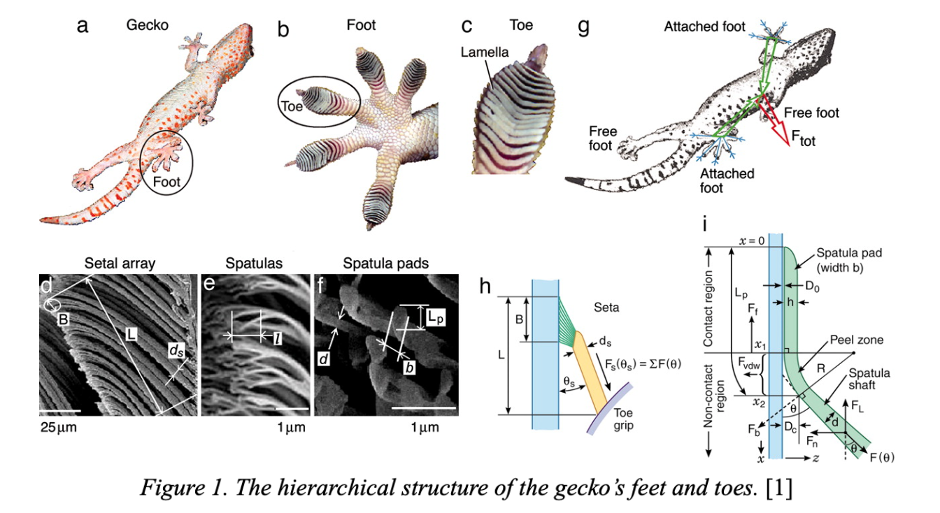 [1] Tian, Yu, et al. “Adhesion and Friction in Gecko Toe Attachment and Detachment.” Proceedings of the National Academy of Sciences, vol. 103, no. 51, 2006, pp. 19320–19325., doi:10.1073/pnas.0608841103.