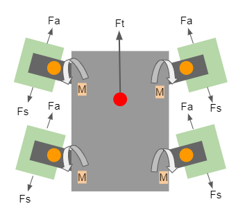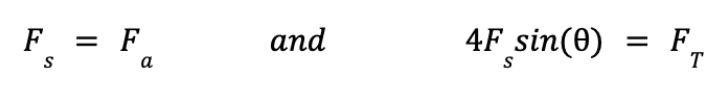 Here Fa is the adhesive force, Fs is the backward force due to the moment M by the servo, and Ft is the net force pushing the body of the GeckoBot forward. For the robot to move, the force of adhesion must be exactly equal to the servo force, such that the pads don't move, which forces the main body to move instead. Assuming a limb length L, we see that: