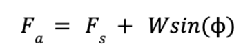 When the robot is perfectly horizontal. When the robot is on an incline of angle phi, then an additional W*sin(phi) component also acts in the downward direction, and the adhesive force must be modified as: