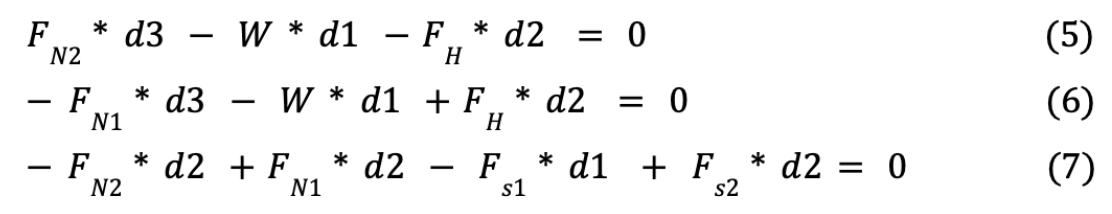 Moreover, since the robot is not slipping, the moments about the two feet centers and the CG balance out as:
